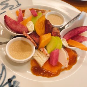 盛り付けもお洒落で食欲をそそりますが、それぞれのソースがどれも美味しく満足できること間違いなしの前菜です。