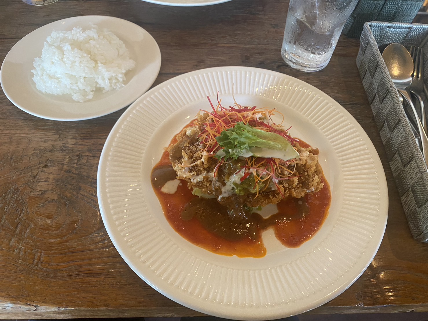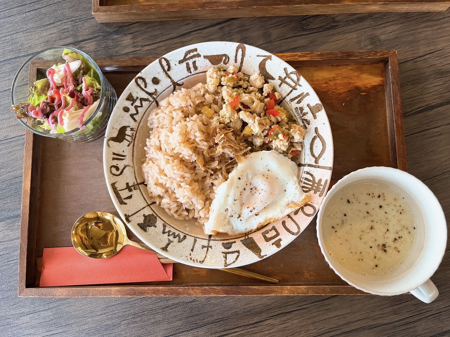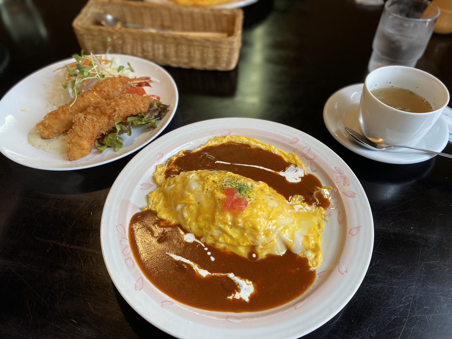 チキンライスが薄焼き卵で包んであって、懐かしさもありながら、やっぱり納得できる味です。