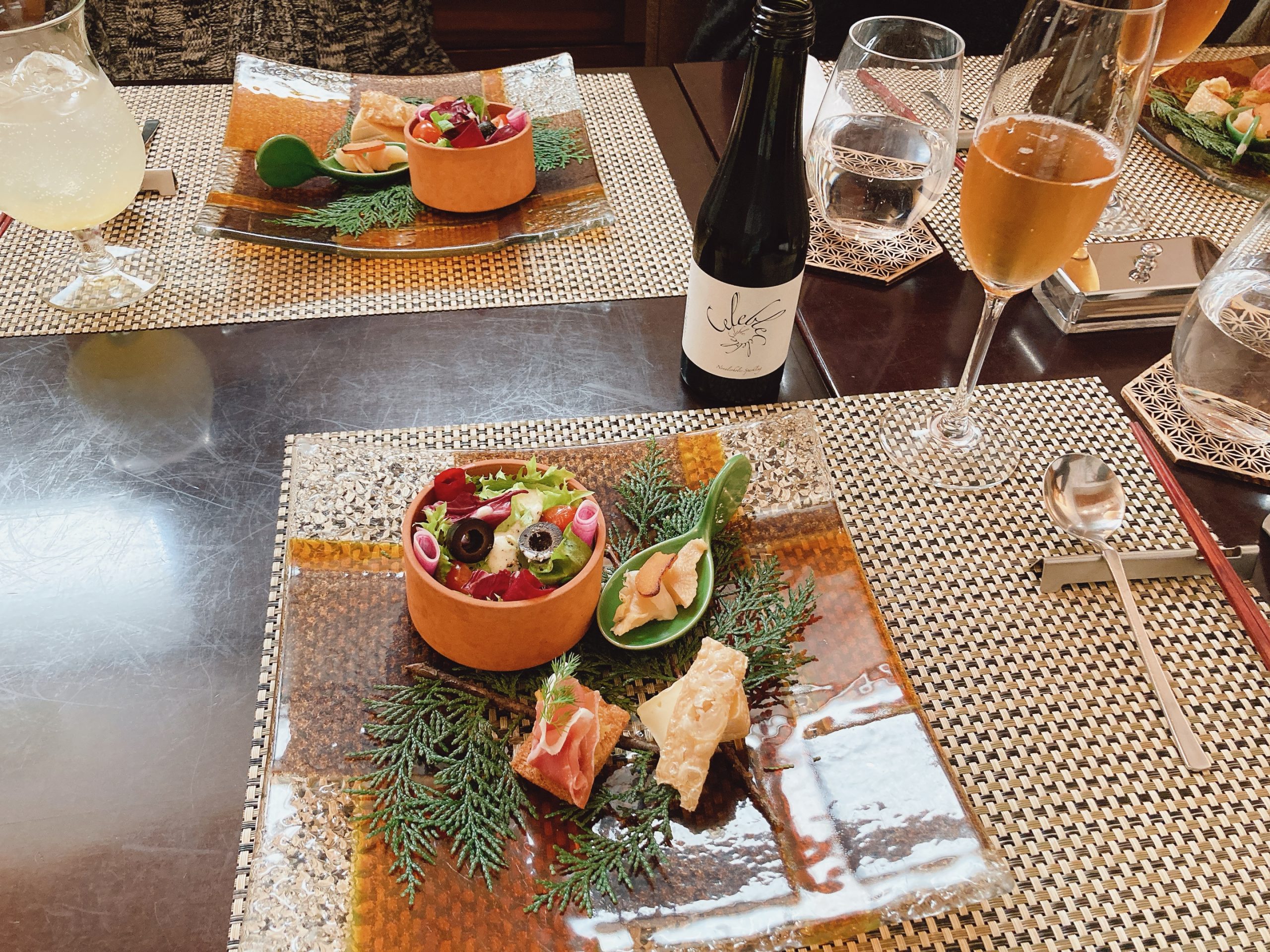 前菜の盛り合わせは、新鮮な魚や肉、野菜など色鮮やかに盛り付けており見た目も味も贅沢な気分を味わえます。