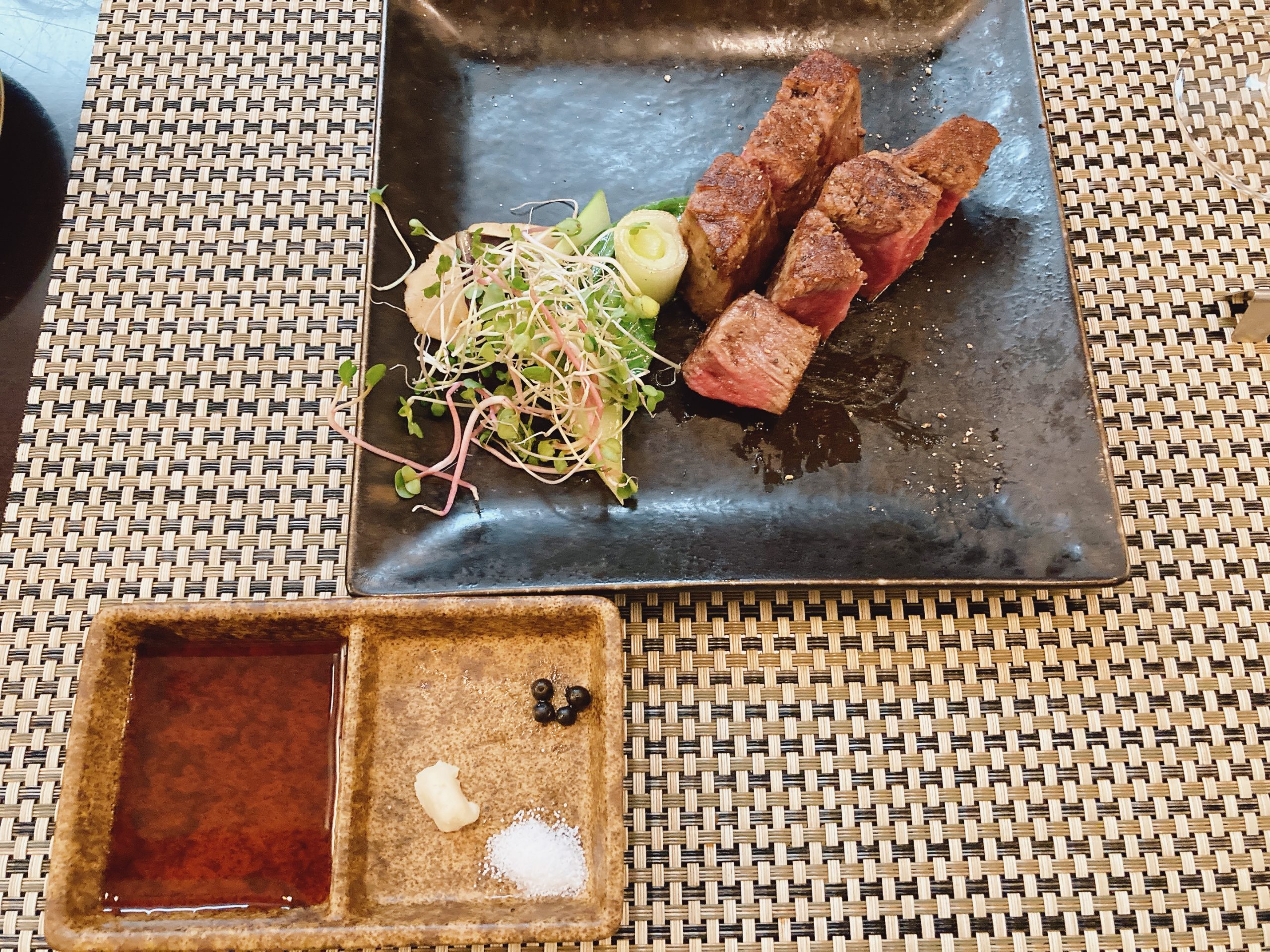 JR後藤駅前にある鉄板ふくもとは、米子では数少ない和牛ステーキを中心とした鉄板焼きの専門店です。店内はシックで大人な香りが漂ってきます。個室も完備。