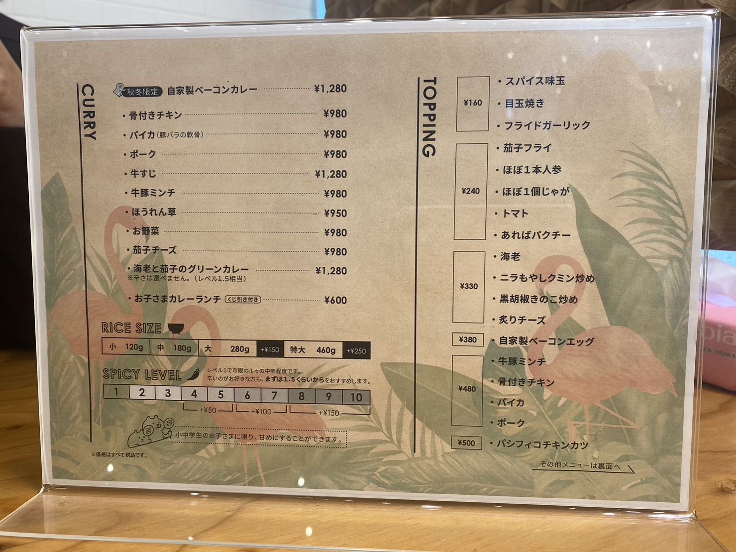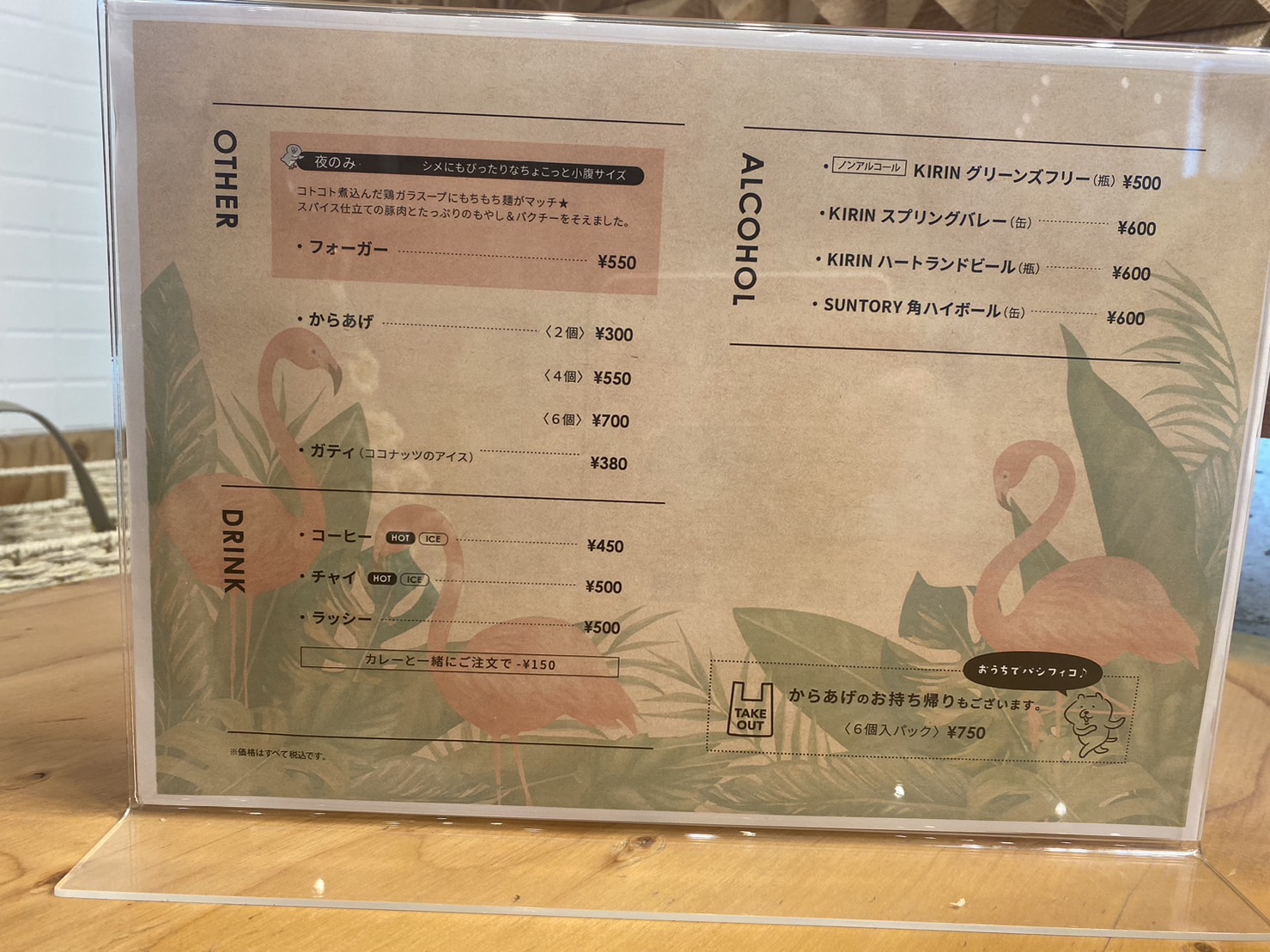 カレー以外にも豊富なメニューでお腹が満たされること間違いなしのお店です。