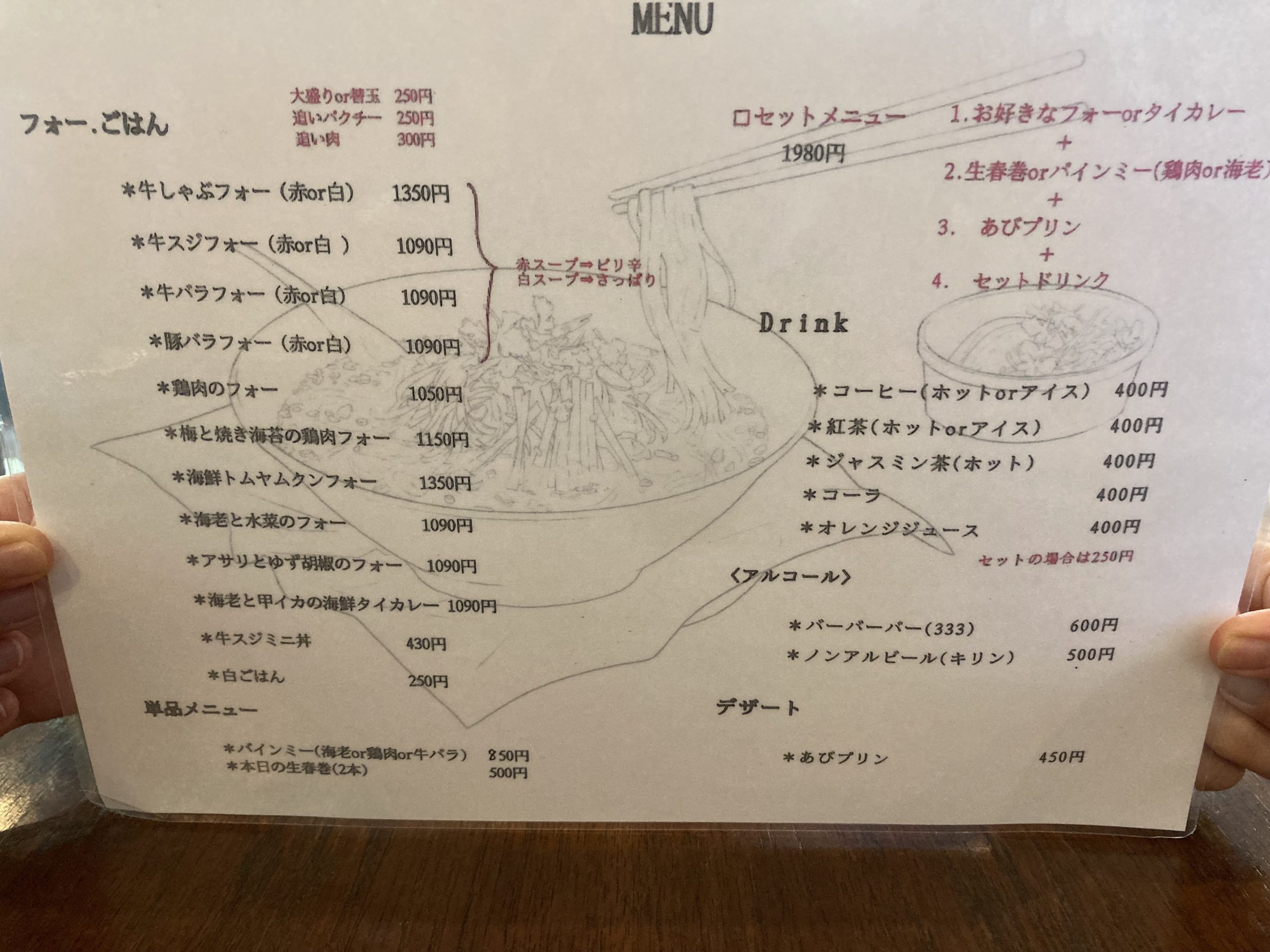 日吉津にあるフォー専門店あびは、日本米を使ったモチモチ生麺が自慢!大きな浮世絵が迎える店内で、ランチ限定営業。セットには生春巻きorバインミー、あびプリン、ドリンク付きでお得感たっぷりです。