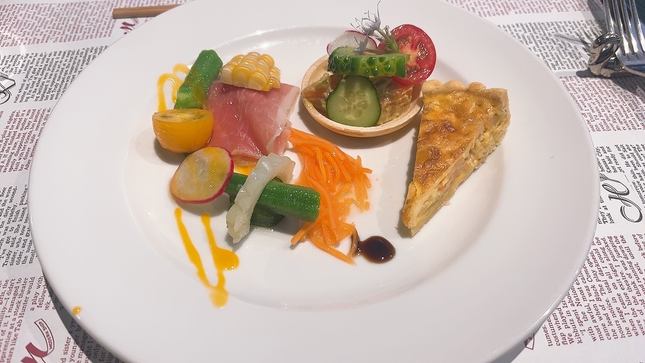 野菜たっぷりのサラダに、キッシュ、食べ応えあります。