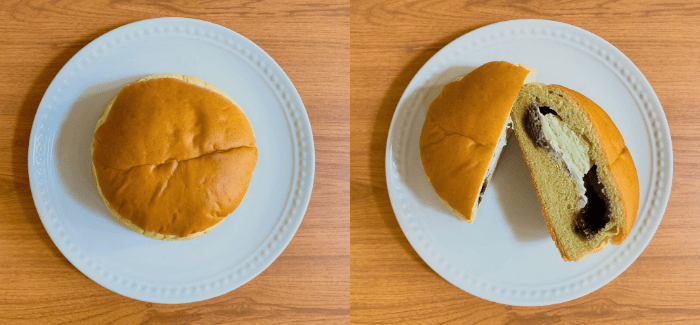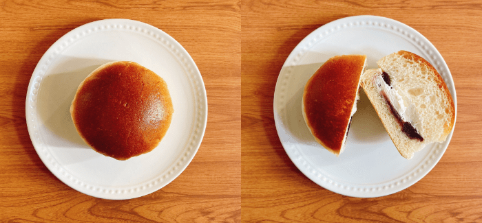 パンの膨らみといい、厚みといい、半端ないです。ハンバーガーを食べるように大きな口でパクリ、パンは少しパサパサしていますが食べ応えがあります。パンに厚みがあるせいか、ホイップクリームとこしあんが少なく感じるけど、甘さ控えめで食べやすいです。