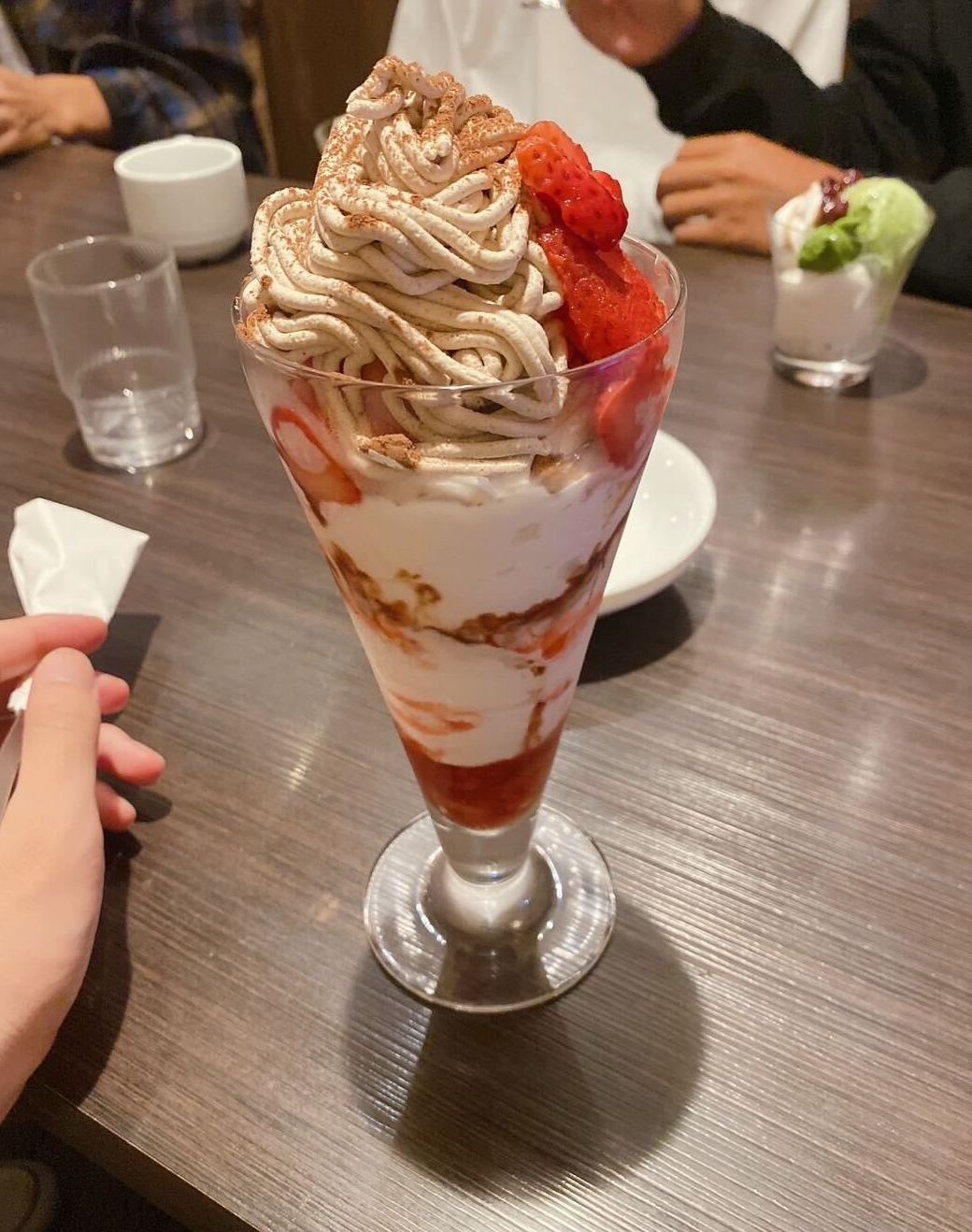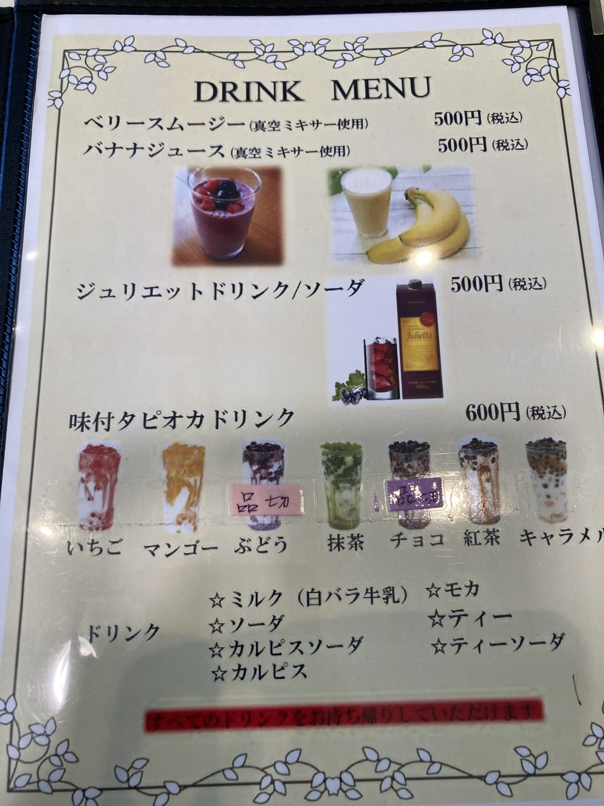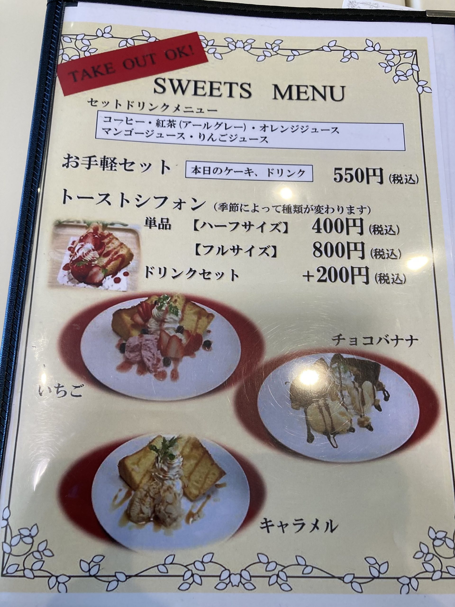 スイーツは、パンケーキにパフェ、ケーキなど様々。季節限定のメニューもあります。ドリンクも種類が豊富です。