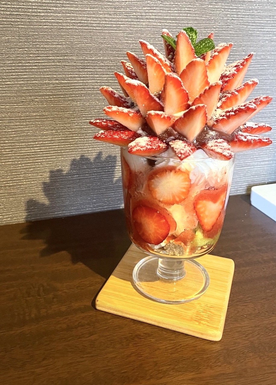 米子市にある青果市場、東亜青果とパティシエがタッグを組んだ、完全予約制のケーキ屋さんです。事前にケーキをオーダーするか、不定期に販売されている限定のケーキセットや限定パフェなどを注文すると購入できます。