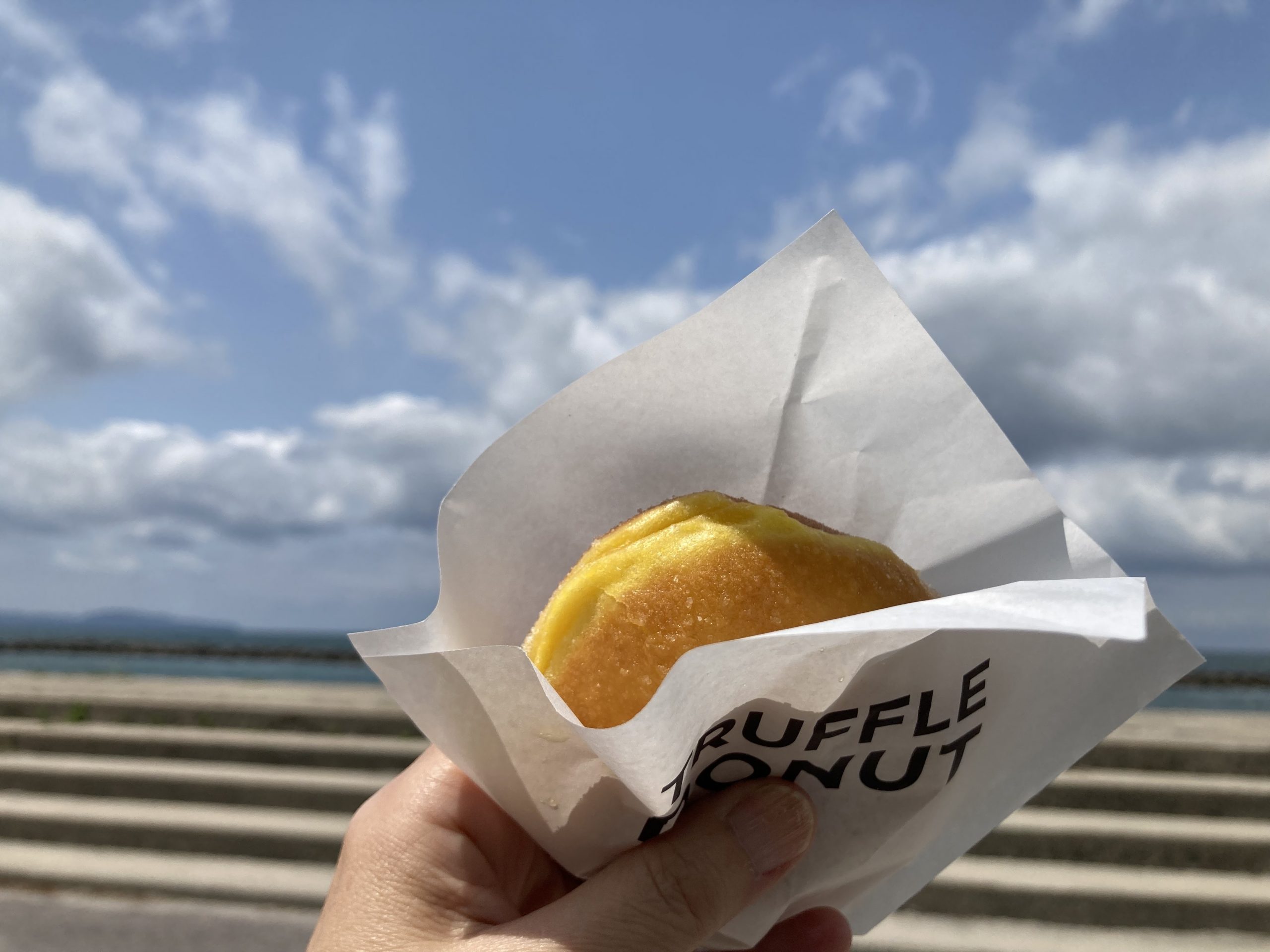 2025年4月オープン!日吉津村のフォー専門店「あび」の隣にあるTRUFFLE DONUT日吉津店は、テイクアウト専門の生ドーナツ店。中でもできたてのトリュフプレーンドーナツは、塩味と甘みのバランスが絶妙です。